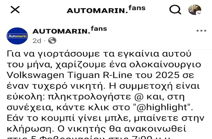 ΠΡΟΣΟΧΗ: Ψεύτικη σελίδα «AUTOMARIN.fans» υποδύεται την Automarin και υπόσχεται «δωρεάν» Volkswagen...