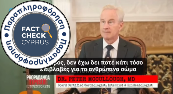 Συμπέρασμα: Οι ισχυρισμοί του Dr. McCullough στο βίντεο είναι παραπλανητικοί. Συγκεκριμένα, ο ισχυρισμός για εισβολή της πρωτεΐνης ακίδας από εμβόλια mRNA στα όργανα στερείται επιστημονικής τεκμηρίωσης, ενώ τα περιστατικά αυτοάνοσων νοσημάτων και θρομβώσεων είναι εξαιρετικά σπάνια. Επιπλέον, δεν υπάρχει καμία επιστημονική απόδειξη που να συνδέει τα εμβόλια με την εμφάνιση καρκίνου, ενώ ο χαρακτηρισμός τους ως βιολογικά όπλα είναι ένας ισχυρισμός χωρίς καμία επιστημονική βάση και αποδεικτικά στοιχεία.
