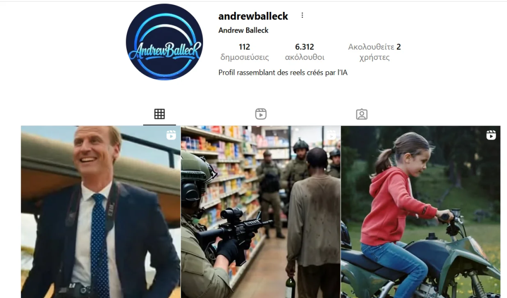 Το βίντεο δημοσιεύθηκε αρχικά από τον λογαριασμό Instagram «andrewballeck». Σημαντικό είναι ότι το bio του λογαριασμού αυτού δηλώνει ξεκάθαρα στα γαλλικά: «Profil rassemblant des reels créées par l’IA» (Προφίλ που συγκεντρώνει reels δημιουργημένα από την Τεχνητή Νοημοσύνη). Παρά την ξεκάθαρη αυτή επισήμανση, το βίντεο αναδημοσιεύθηκε από ελληνικά ειδησεογραφικά sites χωρίς καμία αναφορά στην τεχνητή του φύση.