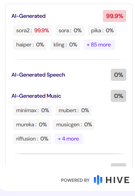 Ειδικότερα, το σύστημα εντόπισε score 99.9% για Sora2 detection, υποδηλώνοντας τη χρήση του Sora2, του video generation model της OpenAI.