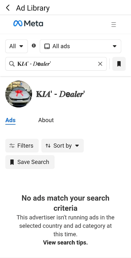 Η αναζήτηση στη Βιβλιοθήκη Διαφημίσεων της Meta επιβεβαιώνει ότι η σελίδα δεν τρέχει καμία διαφήμιση. Αυτό είναι ιδιαίτερα ασυνήθιστο για μια «επίσημη αντιπροσωπεία» που υποτίθεται ότι διοργανώνει μεγάλη προωθητική καμπάνια για τα εγκαίνιά της.