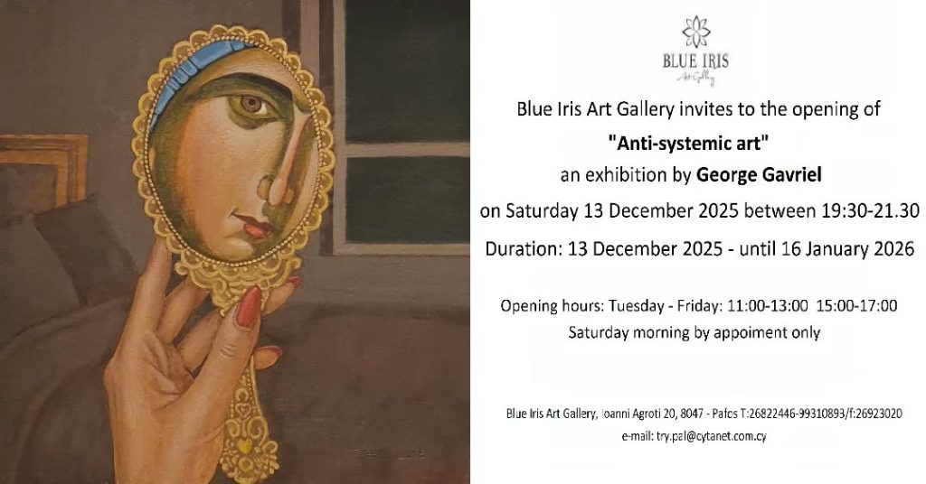 Η έκθεση στην Γκαλερί Τέχνης Blu Iris στην Πάφο είχε προγραμματιστεί από τις 13 Δεκεμβρίου 2025 μέχρι τις 16 Ιανουαρίου 2026.