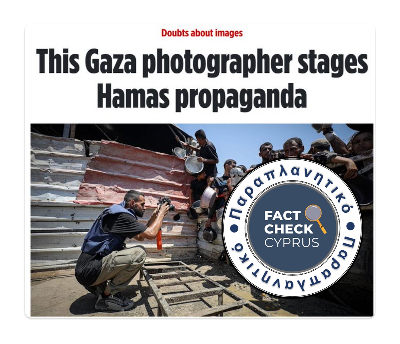 Ισχυρισμός: Ο φωτογράφος του «κλικ» είναι ο παλαιστίνιος Anas Zayed Fteiha. Είναι ανταποκριτής του κρατικού πρακτορείου ειδήσεων «Αnadolu» της Τουρκίας και σκηνοθετεί με επιτυχία στιγμιότυπα της Γάζας που εξυπηρετούν απόλυτα την προπαγάνδα της Χ@μάς.