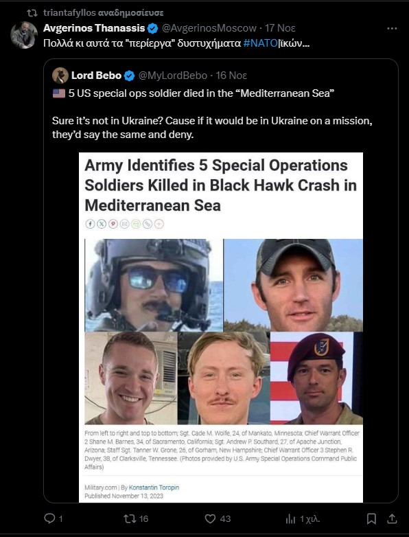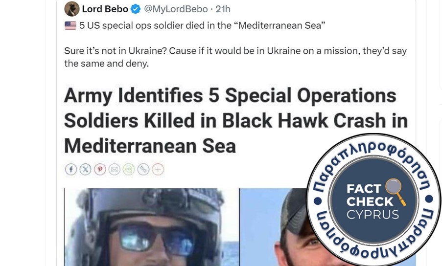 Ισχυρισμός: Πέντε Αμερικανοί στρατιώτες των ειδικών δυνάμεων, οι οποίοι φέρεται να σκοτώθηκαν στη Μεσόγειο Θάλασσα, στην πραγματικότητα έχασαν τη ζωή τους στην Ουκρανία.